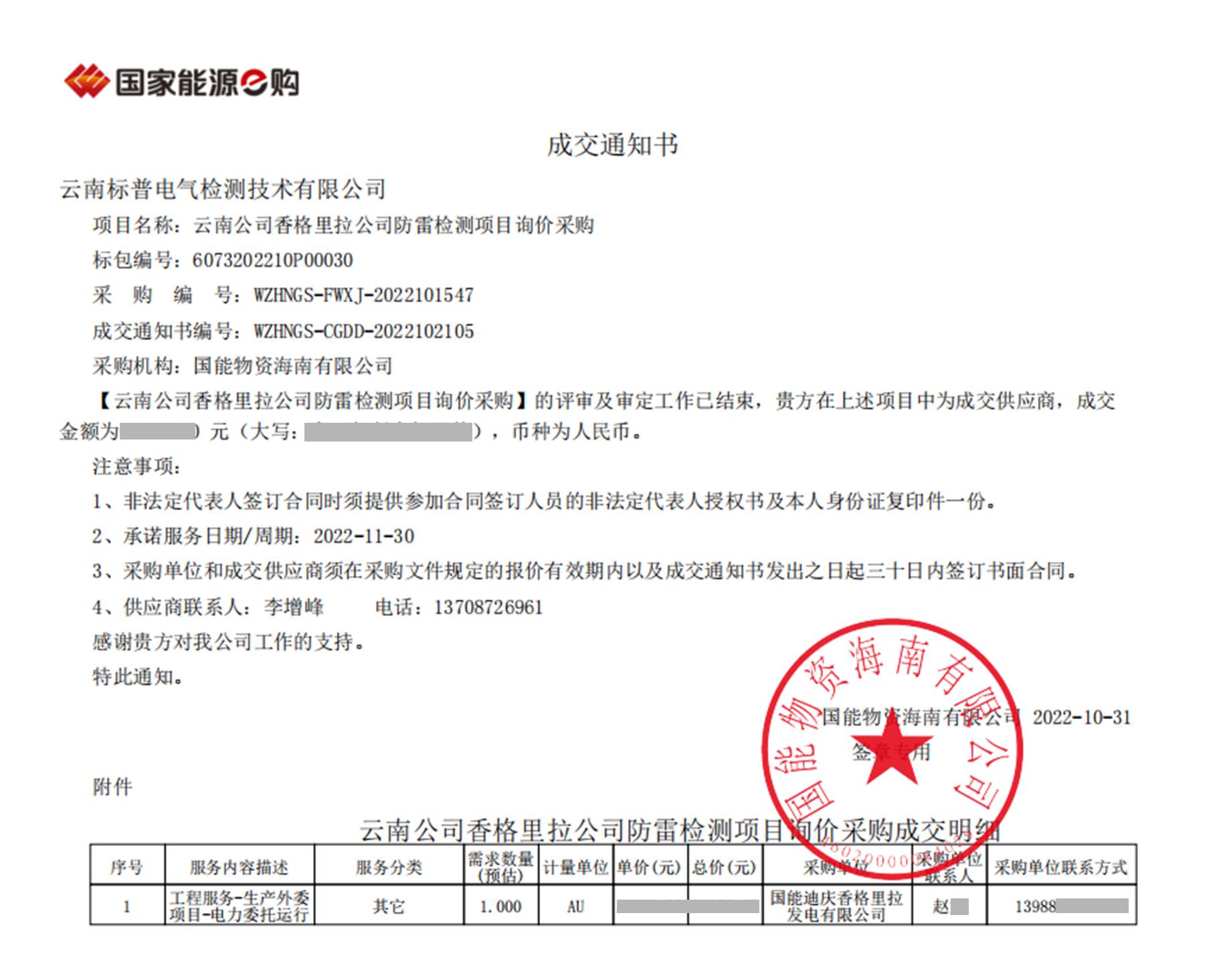 熱烈慶祝云南標(biāo)普電氣檢測(cè)技術(shù)有限公司在云南公司香格里拉公司防雷檢測(cè)項(xiàng)目中標(biāo)!