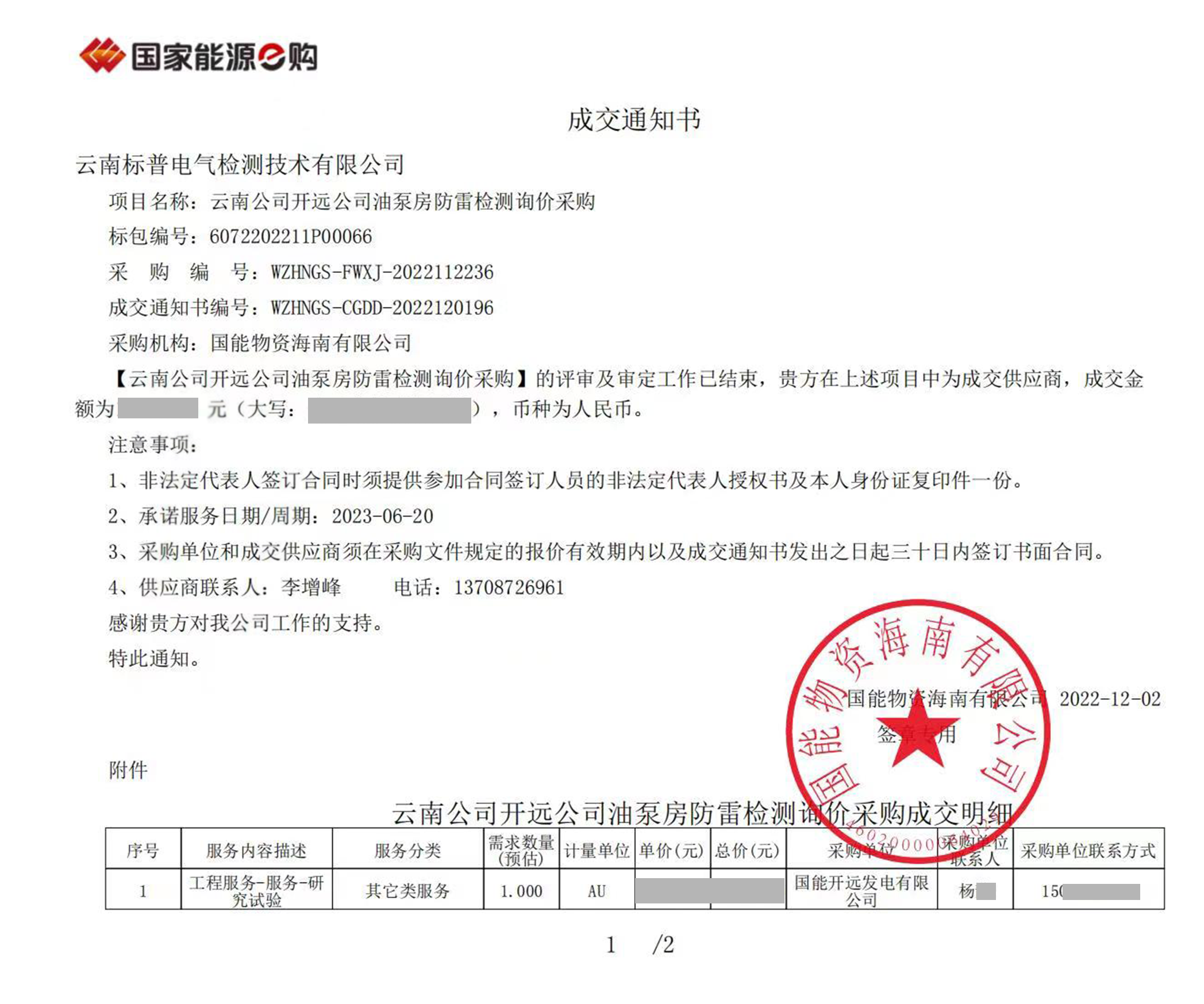 熱烈慶祝云南標(biāo)普電氣檢測(cè)技術(shù)有限公司在云南公司開遠(yuǎn)公司油泵房防雷檢測(cè)詢價(jià)采購項(xiàng)目中標(biāo)!
